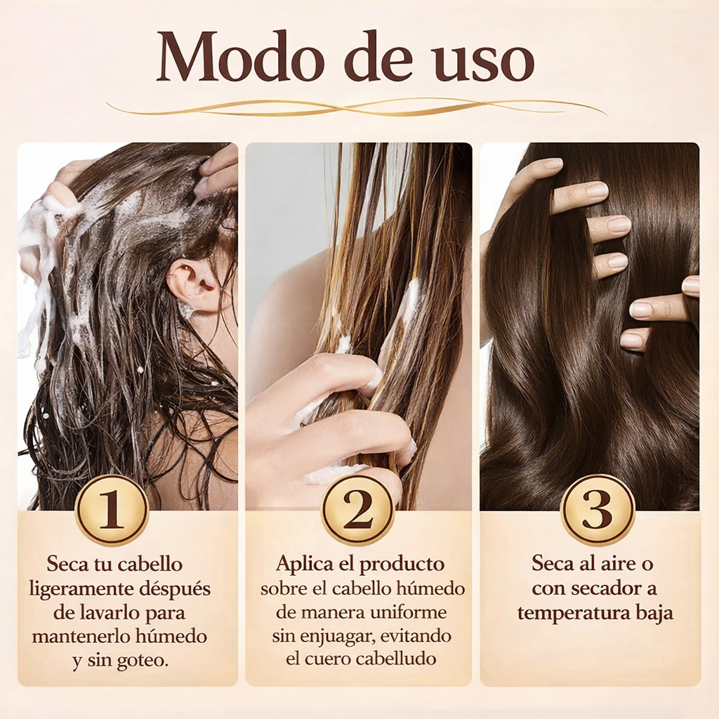 Revive tu cabello desde la primera aplicación. Nuestra Mascarilla Capilar con Colágeno repara el daño extremo, elimina la resequedad y transforma tu pelo en una melena lisa, brillante y sedosa. Hidratación profunda sin sensación grasosa. Resultados visibles o no es para ti. Úsala y nota la diferencia.